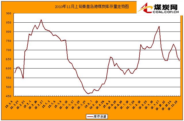 2010年11月上旬秦皇島港煤炭庫存統計圖