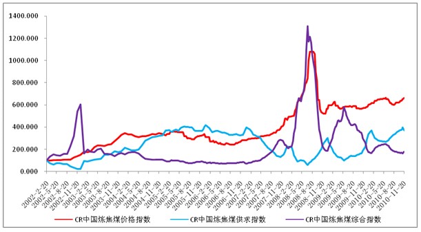 注:2010年焦炭庫存量進行了修正,因此該年度CR焦炭庫存指數有所變化。