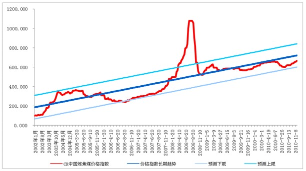 圖2 CR中國焦炭價格指數歷史趨勢及預測范圍