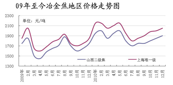 圖3:2009-2010年12月冶金焦地區均價走勢圖
