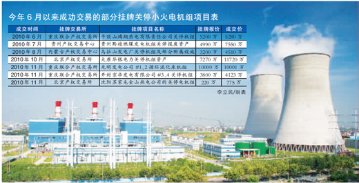 在北京產權交易所信息部主任帥曉姍看來,關停小火電之所以能夠實現“華麗轉身”,與產權交易所的特性不無關系!爱a權交易所在做掛牌項目時,會針對項目做更多推薦和廣泛披露,這樣肯定比私下運作更具有發現價格的能力! 帥曉姍說。