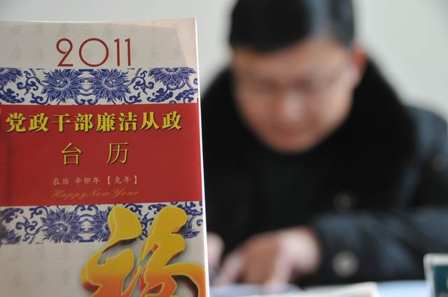 淮北礦業(yè)楊柳煤礦一名黨員干部辦公桌上擺放著“廉政臺(tái)歷”。近日,楊柳礦149名管技干部都收到了礦紀(jì)委贈(zèng)送的新年禮物——2011年黨政干部廉潔從政臺(tái)歷。廉政臺(tái)歷配有大量的廉政故事、案例教育、格言警句和反腐倡廉漫畫,寓教于畫、寓教于理、寓教于樂(lè)、寓教于心,讓每位領(lǐng)導(dǎo)干部每翻一頁(yè)臺(tái)歷都能從中得到啟迪和教益,在潛移默化中培養(yǎng)廉政自覺(jué)性,增強(qiáng)廉政意識(shí),守住廉政底線。(淮北礦業(yè)楊柳煤礦政工部:姜衛(wèi))