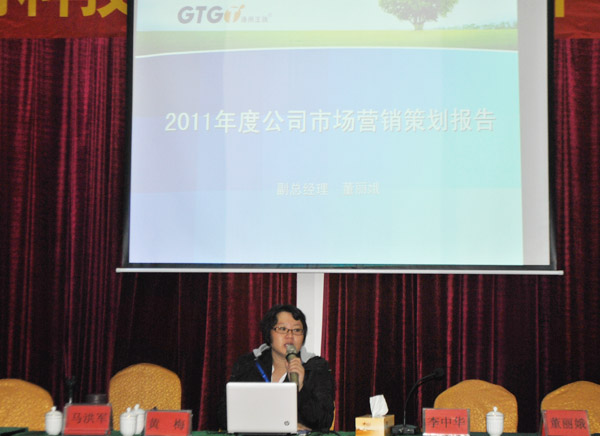 公司副總經理董麗娥女士在大會中作銷售工作總結報告