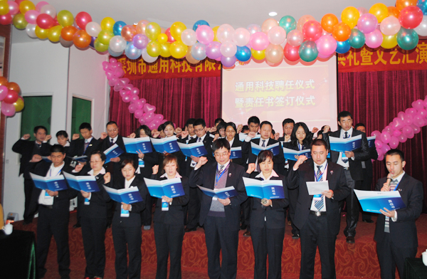 2011年1月12日上午8時,深圳西部明天酒店會議大廳內,在一片熱烈而持久的掌聲中,通用科技2011年管理培訓會議暨2010年終會議隆重召開。公司董事長李中華先生、總經理梁曉峰先生、副總經理董麗娥女士、各部門及各服務中心中高層管理人員出席了會議, 會議歷時5天,取得了圓滿成功。