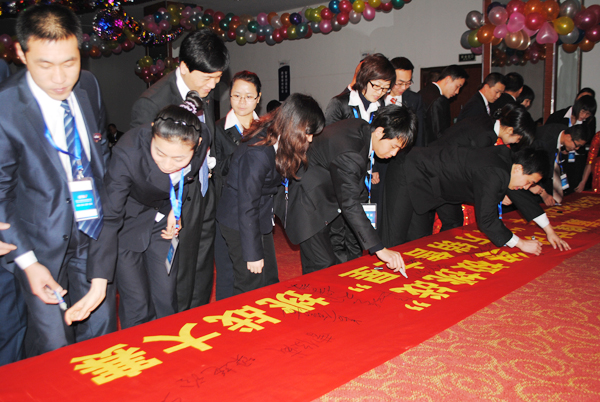 1月16日,公司2010年終頒獎典禮、聘任儀式暨責任狀簽訂儀式隆重舉行。頒獎典禮表彰2010年為公司發展作出突出貢獻的員工,為公司其他員工起到了很好的標桿作用。公司高層向各位員工頒發了聘書,這是對員工工作的認可,也是2011年公司發展的良好開端。責任狀的簽訂,是使命的召喚、是能力的體現、是制度的執行,為2011年銷售工作目標的實現墊定了基礎。會議結束時,公司董事長李中華先生就“盡責踐行 勇爭榮譽”、“厲煉作風”、“打造核心團隊”三方面發表了激情洋溢的閉幕詞。