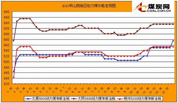 2010年山西地區動力煤價格走勢圖