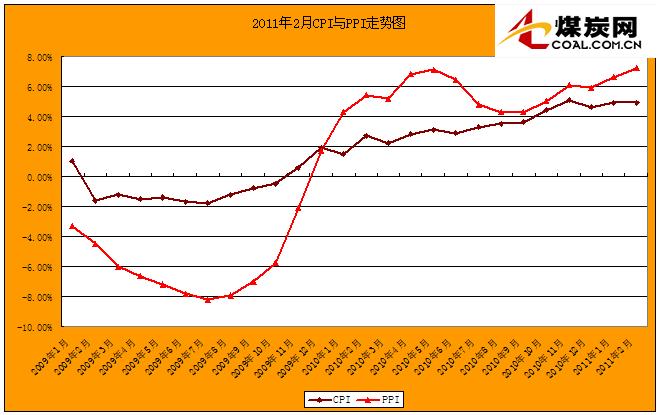 2011年2月份我國CPI與PPI走勢圖