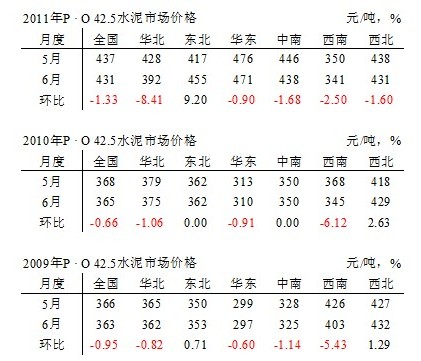2009年,西部地區是行業的最大收益者,西南、西北雙雙跨入400元/噸的門檻,2010年西南落伍了,只有西北的價格在400元/噸之上 ,2011年仍保持在這一位置。但欣喜地看到今年華東、東北、中南也進入了400元/噸這一”家庭”,尤其是華東和中南地區的進入尤為重要,兩個區域的市場容量占到全國的60%以上,使全國的水泥價格站到了400元/噸的”起跑線”,這對未來水泥產業的走勢影響舉足輕重。