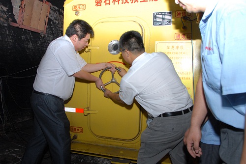 上圖:艙外國家安全生產重慶礦用設備檢測中心工作人員全程監督實驗過程