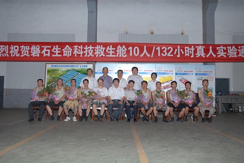 7月31日上午6時整,總經理李培學親自帶隊,在磐石生命科技救生艙內生活了132小時的10名志愿者出艙了,經過醫務人員現場體檢各項生命指標正常。國家安全生產重慶礦用設備檢測中心的工作人員表示“磐石生命科技救生艙10人/132小時真人綜合防護實驗”順利通過驗收,132小時防護時間創造了10人艙全國最高紀錄。