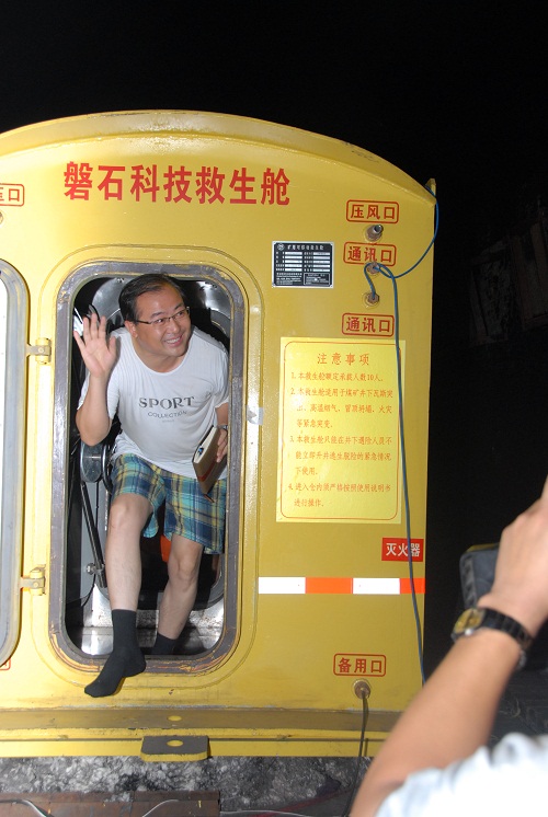 “在救生艙里生活了這5天半時間,身體沒有明顯感覺異常,”剛體檢完的總經理李培學幽默地說,“現在煤礦招工我也敢去了,有了我們這樣的救生艙礦工生命也就有保障了。”