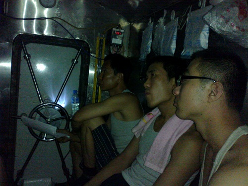 上圖:艙內值班人員在認真觀察儀器儀表并每半小時記錄一次數據