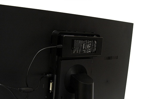 三星SA850背部造型風格與正面一樣簡約,非常實用的適配器卡槽設計即可以節省使用者的桌面空間,同時如果需移動或搬運顯示器,它還是一個實用的提手。此外,作為一款專業的顯示器,SA850還支持壁掛功能,它可以兼容各種 VESA 標準壁掛安裝配件。