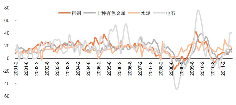從高耗能產品的產量來看,7月份粗鋼產量同比增長15.48%,較6月份提升3.6個百分點;有色和水泥產量增速則均出現了較明顯的下滑,分別較上月下滑4.2和3.1個百分點。7月份電石產量基本與上月持平。