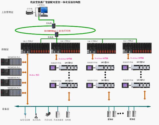 開灤有限責任公司錢加營礦業分公司選煤廠,是一座能夠年處理能力400萬噸的大型現代化礦井型選煤廠。1983年開始籌建,1989年11月建成投產,主要工藝及成套設備從波蘭引進,1992年4月達產。生產工藝為:13~150mm塊煤采用重介立輪再選,0.5~13mm末煤采用重介旋流器主再選,0~0.5mm煤泥直接浮選,尾煤濃縮壓濾。主要產品為10~12級煉焦精煤,洗塊煤、洗混煤、煤泥。2003年~2004年該洗煤廠主要設備進行了升級改造,增加了進口的主要設備旋流器、振動篩、離心機和磁選機等。2009年,洗煤廠再次投資擴容一個浮選車間和一套863新浮選工藝設備。此次擴容的電氣設備的綜合管理,為北京和利時自動化驅動技術有限公司實現煤礦行業的智能供配電管控一體化自動控制提供了難得的的平臺和機遇。2011年6月底確定該項目正式啟動后,公司的煤炭事業部立即組織相關人力物力重點專攻,從2011年7月技術交流確定方案開始,8月硬件到現場,9月份調試及正式投運,項目組成員圓滿順利的完成了該項目。改造后的選煤廠,洗選效率提高,設備維護效率提高,自動化程度提高,配合新工藝的良好控制,洗煤廠年處理能力提高到了600噸煤左右。