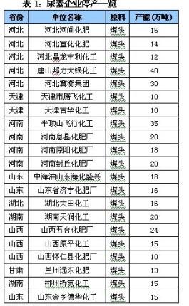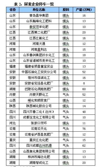 從上述停產的尿素企業中,我們可以看出兩個共同點:均為煤頭企業以及局處于產能大省。簡而言之,前者說明了以煤為原料的生產企業如果不做工藝優化就可能因成本壓力本行業淘汰;后者則反映處于尿素產能大省的企業不可避免地會被競爭所淘汰,以上兩點很好的詮釋了未來尿素產能淘汰的必然性。當然,這一過程是漫長且沉痛的,但又時必須接受的。看過表1中的停產企業之后,我們還關注了一些截止到2012年元月中旬依然停車的企業。如表2所示,數量同樣不少于20家,且多承受著成本以及價格競爭的壓力,想必也是吉兇難料。