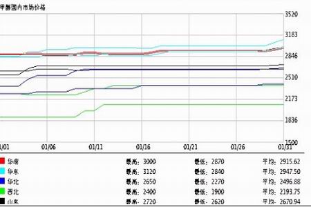 1月份,國內甲醇現(xiàn)貨市場于春節(jié)前呈現(xiàn)偏強震蕩態(tài)勢。受期貨帶動,華東港口地區(qū)拉漲趨勢較明顯,內地多數(shù)區(qū)域則保持平穩(wěn)走勢。臨近春節(jié)假期,業(yè)內人士陸續(xù)離市,各地交易情況頗為清淡。節(jié)后國內各地甲醇市場呈現(xiàn)不同幅度的上揚行情,相比較而言,港口波動幅度較大,內地暫不明顯。港口地區(qū)與期貨盤面較為配合,同時伊朗問題撲朔迷離,外盤價格繼續(xù)走高;截止31日收盤,華東地區(qū)收于3000-3120元/噸,較節(jié)前上漲70-100元/噸,華南2980-3000元/噸,較節(jié)前上揚50元/噸;內地上漲幅度多在50元/噸以內。就內地而言,節(jié)后主要生產(chǎn)區(qū)西北壓力暫時不大,合同多已在節(jié)前訂出,現(xiàn)陸續(xù)消化當中,但也有相當比例人士在3000元/噸關口較為謹慎。現(xiàn)貨價格的平穩(wěn)抬高,使業(yè)者普遍認為期貨價格在下游需求沒有完全釋放的情況下過于迅速,因此中短線對期貨價格有回調預期。