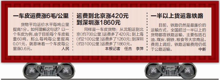 鐵路運費每噸公里漲1分,引發價格鏈條上的蝴蝶效應,由鐵路承運的農產品等消費品也將隨之漲價。