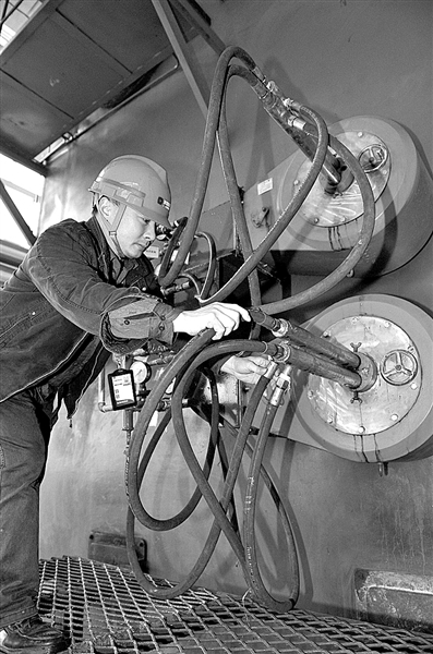 圖為工作人員在貴陽清鎮(zhèn)市的貴州聯(lián)和清潔燃料公司水煤漿集中供汽站檢修設(shè)備。為節(jié)約能源資源、保護環(huán)境,進一步提高經(jīng)濟發(fā)展的質(zhì)量和效益,公司總投資5.5億元規(guī)劃建設(shè)這一項目,現(xiàn)已竣工投產(chǎn)。新華社發(fā)