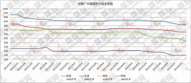 本周華南地區(qū)煤炭市場繼續(xù)延續(xù)弱勢平穩(wěn)走勢,港口存煤周環(huán)比不變。本周華南地區(qū)氣溫 有所升高,電廠負(fù)荷趨于飽和,但是電廠庫存仍處在高位,采購積極性不高。本周北方港口動(dòng)力煤市場繼續(xù)大幅下跌,港口Q5500大卡動(dòng)力煤平倉價(jià)715-725元/噸,較上期下跌20元;Q5000大卡動(dòng)力煤平倉價(jià)610-620元/噸,較上期下跌20元;Q4500大卡動(dòng)力煤平倉價(jià)515-525元/噸,較上期下跌20元。港口存煤有所下滑,截止到5月24日,秦港存煤908萬噸,較前期940萬噸的高位下降32萬噸,港口庫存仍處于高位狀態(tài)。目前市場各方對(duì)上周環(huán)渤海地區(qū)市場動(dòng)力煤價(jià)格驟降心有余悸,又對(duì)未來短期內(nèi)市場動(dòng)力煤價(jià)格走勢缺乏信心,煤炭生產(chǎn)企業(yè)、發(fā)運(yùn)企業(yè)、貿(mào)易企業(yè)、甚至包括電力企業(yè)在內(nèi)的高煤炭庫存企業(yè)幾乎全部加入到了降價(jià)促銷的行列,而且不乏以更低價(jià)格拋售的企業(yè)和行為,加速了市場煤炭價(jià)格的下挫。截止到6月24日,下游主力電廠燃煤可用天數(shù)為27天,較上周減少1天,高庫存導(dǎo)致下游電廠派船的積極性減退,從錨地船舶等待裝船的數(shù)量看,動(dòng)力煤價(jià)格還將小幅回落。本周華南地區(qū)煉焦煤市場運(yùn)行穩(wěn)定,進(jìn)口無煙煤到貨量有所增多,市場有所下滑。