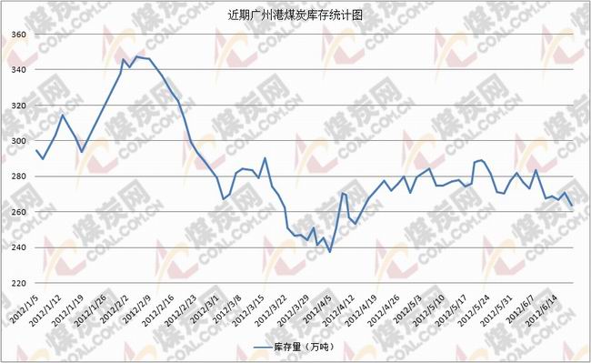 港口庫存方面:煤炭網(wǎng)信息研究中心數(shù)據(jù)顯示,截止到6月19日,廣州港存煤263.58萬噸。其中新沙公司存煤132萬噸;西基公司存煤57.74萬噸;新港公司存煤62.96萬噸;黃埔公司存煤10.91萬噸。