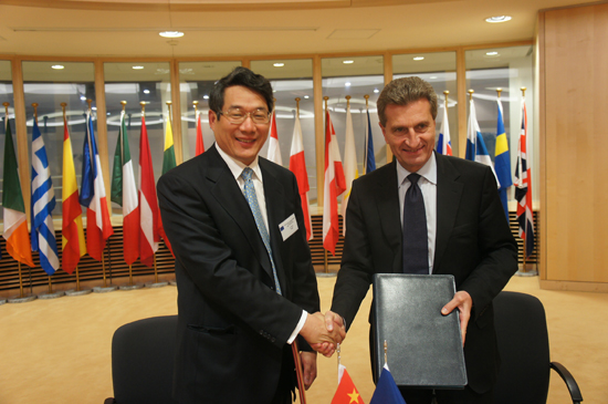 國家能源局局長劉鐵男與歐盟能源委員袞特·厄廷格簽署會議紀要