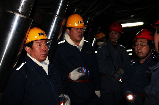 張喜武董事長直接到五虎山煤礦下井,先后到10#層1001綜采工作面、9#層變電所、9#層井下班中餐就餐點等進行抽查,仔細察看了工作面的各種安全生產設施運行情況,礦井安全監測監控系統使用情況,與礦領導、跟班干部、當班工人深入交談,詳細詢問井下水、火、瓦斯防治情況,工作面風量、端頭支護、機電管理、工人作業環境和班中餐等情況;察看了采掘區隊的基礎管理、班組建設等情況。在聽取礦長、書記簡要匯報后,張喜武董事長說,近年來多次到五虎山礦下井,也多次提出批評,這次下井突擊檢查,看到雖然還有不足,但無論井下安全質量標準化、采掘面安全性,還是地面礦容礦貌、文明生產,以及干部員工的精神面貌,與以往比都發生了很大變化。但是,煤礦安全生產的實踐告訴我們,安全工作永遠只有起點、沒有終點,要保證長治久安,做到本質安全,必須警鐘長鳴,常抓不懈。他指出,五虎山煤礦時刻面臨水、火、瓦斯、頂板等五大災害的威脅,而且煤礦生產是動態的,隨時還可能面臨不可預測的風險,安全管理的難度非常大,一定要比其他煤礦下更大的力量狠抓安全,更要全面提高全礦井的安全管理水平,要動員全礦員工一起認真研究制定并加快實施從根本上解決五大災害的方案,確保長治久安。要加快本質安全礦井的建設步伐,爭取進入神華第一批本質安全型礦井。