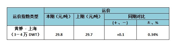 此表包含黃驊港航線運價指數(黃驊-上海航線)運價指數的本期和上期數,以及同比增減。