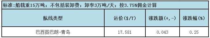 此表包含巴西圖巴朗-青島運價指數的本期和上期數,以及同比增減。