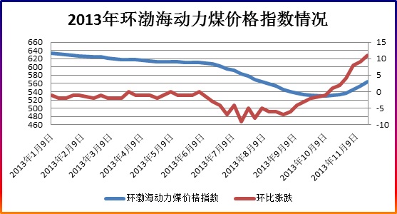 新一屆中央政府成立以來(lái),著力于經(jīng)濟(jì)結(jié)構(gòu)的優(yōu)化和調(diào)整,在經(jīng)濟(jì)發(fā)展速度和質(zhì)量之間更加準(zhǔn)求經(jīng)濟(jì)發(fā)展的質(zhì)量和可持續(xù),在這個(gè)過(guò)程中,宏觀經(jīng)濟(jì)尤其是固定資產(chǎn)投資等增長(zhǎng)速度放緩,對(duì)電力、煤炭等能源消耗也出現(xiàn)增速回落,伴隨著的就是煤炭市場(chǎng)的價(jià)格下滑和市場(chǎng)成交不暢,大量中小煤礦限產(chǎn)、停產(chǎn),煤炭市場(chǎng)有效供給有所回落。進(jìn)入三季度后宏觀經(jīng)濟(jì)出現(xiàn)企穩(wěn)小幅回升的跡象,加上水電出力減少,火電出力增多,電煤需求也隨之增多,再加上冬季供暖用煤和其他動(dòng)力用煤行業(yè)的需求,動(dòng)力煤市場(chǎng)供需格局出現(xiàn)有利于煤炭生產(chǎn)企業(yè)的變化,在這樣的情況下,為了彌補(bǔ)企業(yè)前期大幅降價(jià)的損失,主要煤炭生產(chǎn)企業(yè)逐步提高煤炭?jī)r(jià)格成為一種必然選擇。