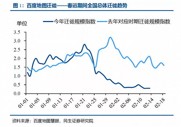 民生宏觀在日前發布的一份研報中從包括全國春運遷移指數、全國鐵路、道路、水路、民航發客總量在內的六個角度分析了當前的復工進度。