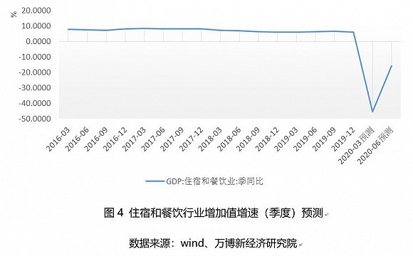 住宿和餐飲業:三季度及以后行業全面恢復但上半年損失的產值無法回補,預計三季度和四季度增加值分別為4887億元、5375億元,增速均為6%。預計2020年全年住宿餐飲行業增加值為16058億元,全年同比增速約為-11%。