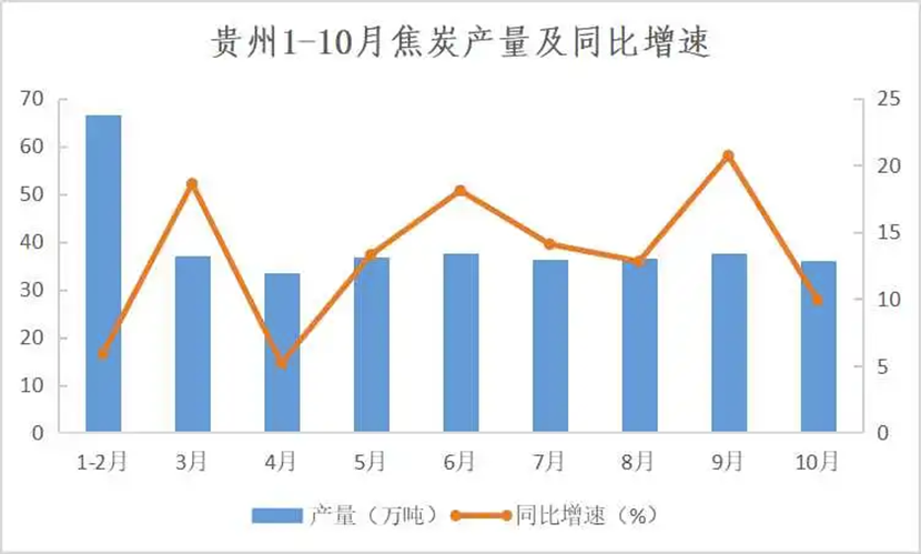 另外,焦炭產量全年均維持正增長,前10月,焦炭累計產量358.4萬噸,累計增長12.4%。