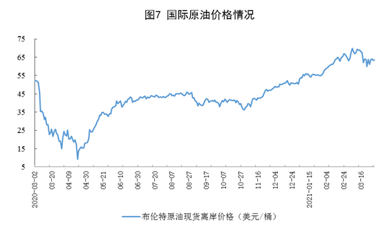 原油進口大幅增長,國際原油價格基本穩定。3月份,進口原油4966萬噸,同比增長20.8%;一季度,進口原油13923萬噸,同比增長9.5%。3月31日布倫特原油現貨離岸價格為63.52美元/桶,比3月1日的64.56美元/桶下跌1.6%。