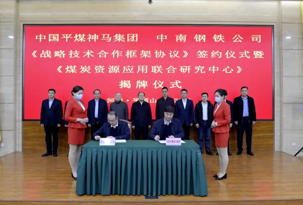 2月9日上午,中國平煤神馬集團與中南鋼鐵公司《戰(zhàn)略技術合作框架協(xié)議》簽約儀式暨“煤炭資源應用聯(lián)合研究中心”揭牌儀式在集團會議中心舉行。集團總經(jīng)理杜波,中南鋼鐵公司總裁、黨委副書記吳琨宗出席儀式,并就深化合作親切交流。