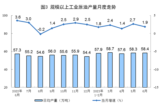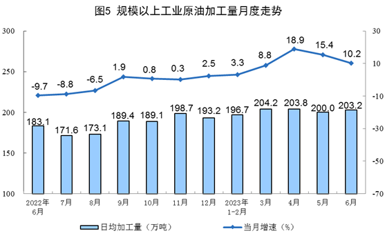 原油生產保持平穩,進口快速增長,原油加工較快增長。上半年,生產原油10505萬噸,同比增長2.1%。進口原油28208萬噸,同比增長11.7%。加工原油36358萬噸,同比增長9.9%。6月份,生產原油1752萬噸,同比增長1.9%。加工原油6095萬噸,同比增長10.2%。