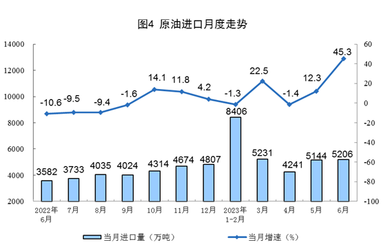 進口數據來源于海關總署,其中2023年6月份數據為快訊數據。