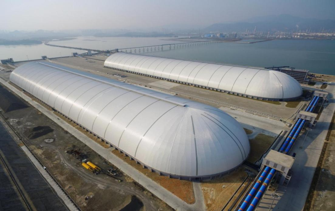 最具特色的是兩座“長500米、寬118米、高42米”的全亞洲最大的環保鋼結構條形封閉煤倉,其創新性的設計榮獲2019年“中國鋼結構金獎”。惠州荃灣煤炭港的綠色發展以“一套海陸空三位一體的污染防治體系+光伏項目+碼頭岸電設施”為核心的三個“綠色法寶”。煤炭出入倉封閉作業、皮帶機封閉式作業、多重除塵裝置三大保障,實現了防治煤灰、揚塵污染。因地制宜布置了分布式光伏設備,年均可為港口提供清潔電能約597.2萬kWh,節約標準煤約733.96噸/年。通過建設岸電設施及含油、含煤、生活三大污水處理站,基本實現了“零污染、零排放”,為構建零碳港口建設示范標桿注入綠色新動能。