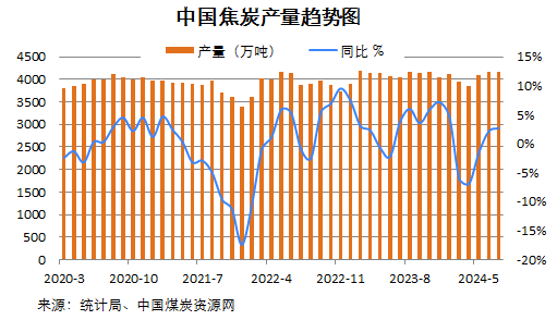 1-7月份,全國焦炭產量28344萬噸,同比降0.4%。7月份焦炭產量為4158萬噸,環比降0.1%,同比增2.7%;據此測算,7月份焦炭日均產量134萬噸,環比降3.4%。