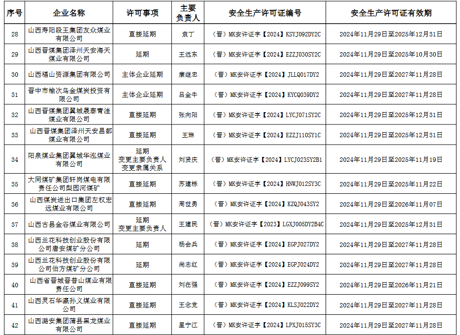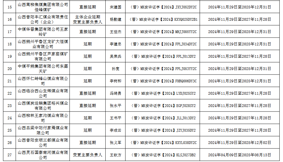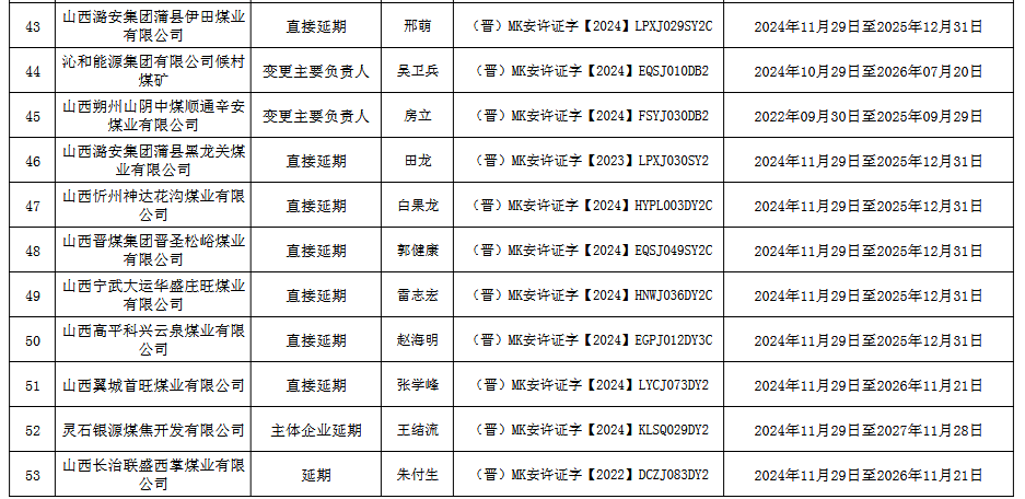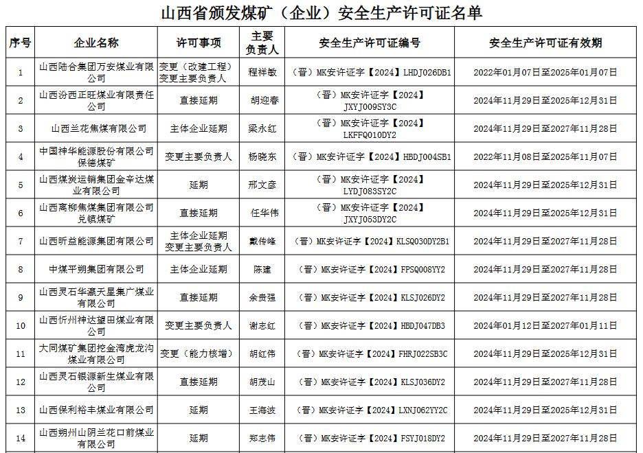 山西省應(yīng)急管理廳關(guān)于頒發(fā)煤礦(企業(yè))安全生產(chǎn)許可證的公告