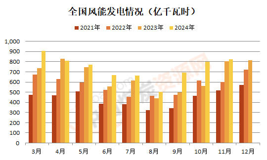 2024年1-11月份,全國風力發電量為8,437.7億千瓦時,同比增長11.5%,風電發力與往年同期相比增長明顯。其中,累計發電量前五的省份為內蒙古、新疆、河北、江蘇、山東。