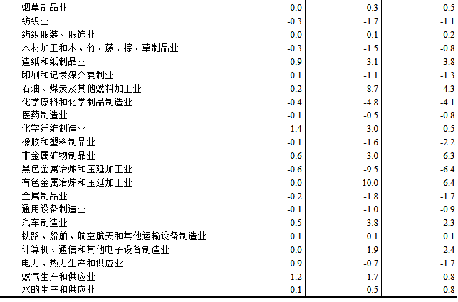 工業(yè)生產(chǎn)者購進價格中,黑色金屬材料類價格下降7.9%,燃料動力類價格下降5.9%,化工原料類價格下降4.7%,農(nóng)副產(chǎn)品類價格下降3.9%,建筑材料及非金屬類價格下降2.3%,紡織原料類價格下降1.6%;有色金屬材料及電線類價格上漲11.4%。